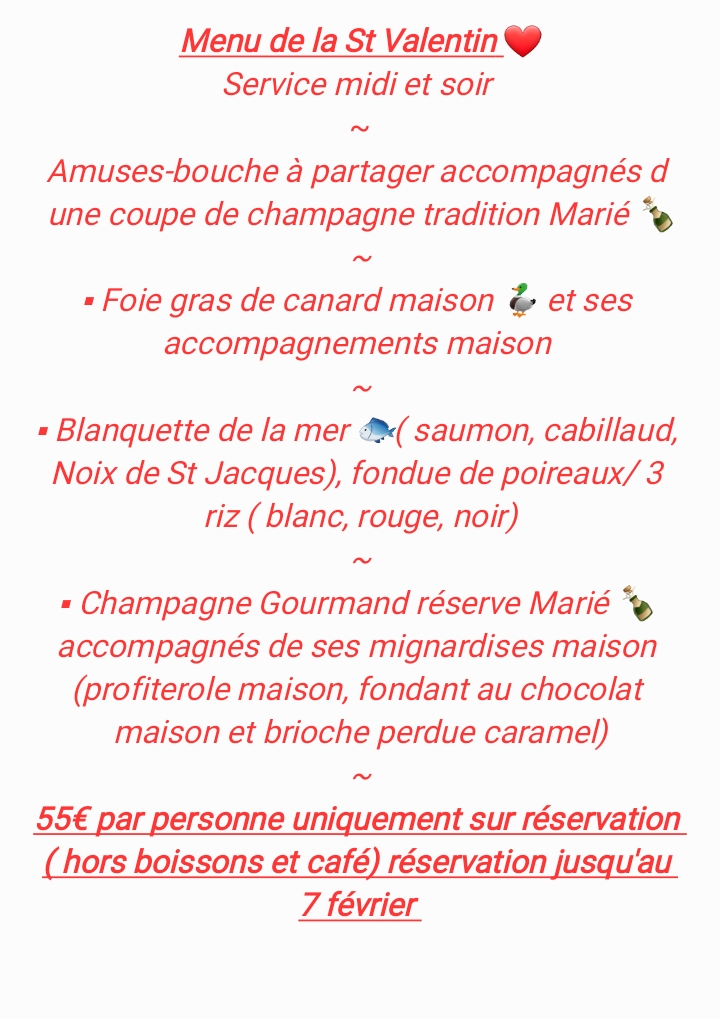 Nous informons notre clientèle que lorsqu'une table est prise pour 2 personnes( ou plus ) et qu'un seul plat est commandé un supplément de 12€ sera facturé à la personne qui accompagne . Merci de votre compréhension